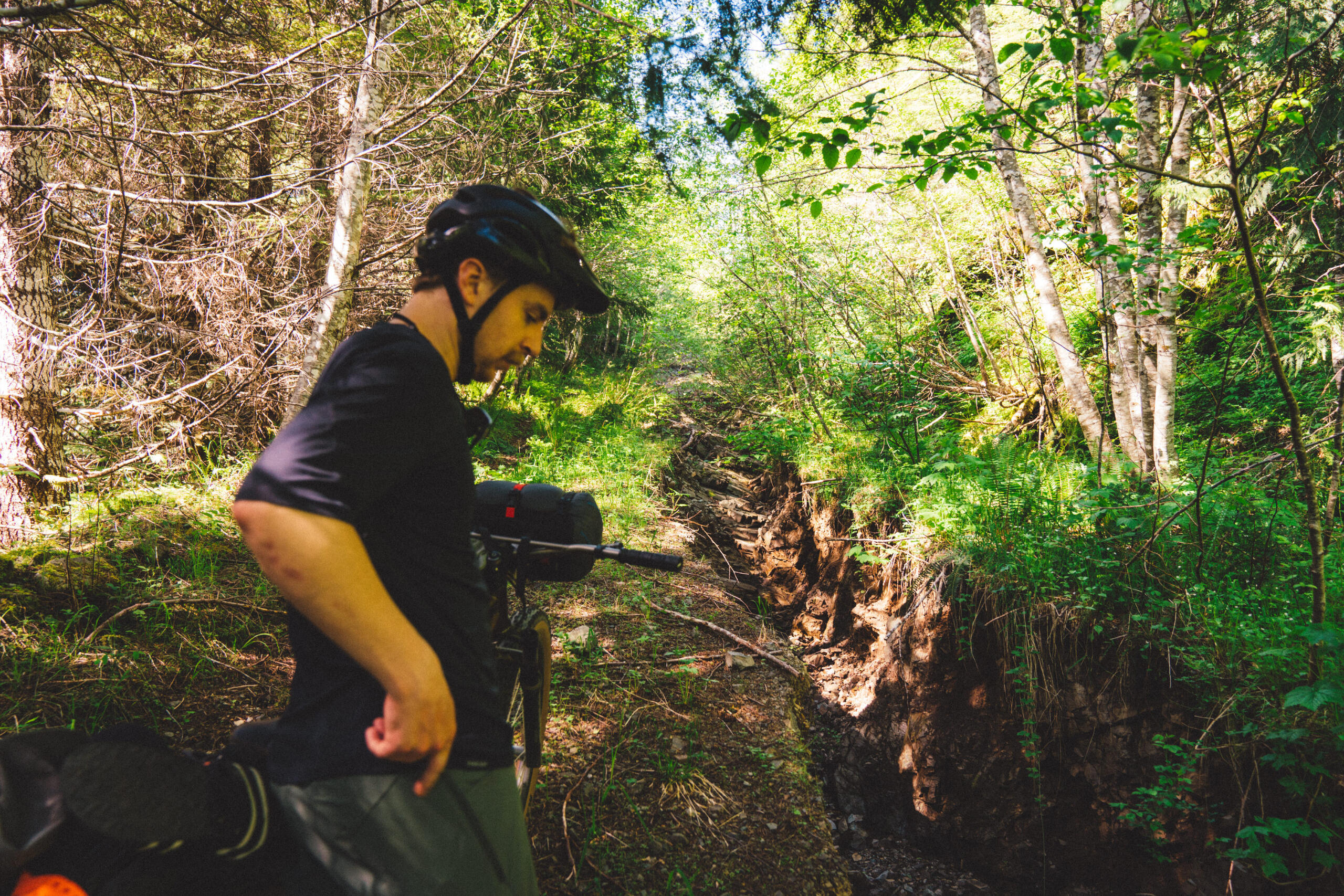 After an arduous climb pushing our bikes loaded with camping gear up a surprisingly steep gravel road in the hot June sun, the four of us took a much-needed break leaning against a logging company’s Caterpillar excavator parked for the weekend. Once we’d started pedaling about four hours earlier, the beginning of our bikepacking trip had gone surprisingly smoothly, even including a section of unexpectedly paved road. While the sudden monument of a hill had quickly ended the breeziness of the expedition, we didn’t realize that we were only beginning an onslaught of difficulties to come.In what may have been a bad omen, the troubles actually began before we departed, when one of our bikes was crushed being run over by a pickup when Jack (a great long-time friend) left it on the side of his driveway, concealed from the pickup driver by long grass. Needless to say, the bike was a write-off, and Grant (great friend and owner of Cowichan Cycles) scrambled to find a replacement in time. Luckily, he was able to source something, and on Saturday we loaded up our bikes with camping gear at the bike shop and headed out to begin our journey, being dropped off by Jack’s dad (shout out to Walt) at Kissinger Lake, just past Cowichan Lake.I had taken it upon myself to pick a route for us, and out of the options I presented, Grant, Jack, and Grant’s little brother, Luke (another great friend), agreed that following a network of logging roads from Cowichan Lake to Cameron Lake near Port Alberni would be our goal, stopping for a night at a remote mountain lake to hang out and wash a few lures. While the route looked simple and fairly easy when reviewed on online maps, the reality was quite different.Before the great hill, about three hours into our journey, we’d stopped for a lunch break at a recently repaired bridge, washed out by incredible Autumn rains. While eating, we heard a motor approaching in the distance, and a motorcyclist stopped to chat, asking where we were headed. After telling him, he asked if we’d done the route before. Replying that we hadn’t, he warned that the section beyond the top of the hill was impassable via truck, may-as-well-be impossible via motorbike, just possible on foot, and debatably so with bicycles. While we exchanged nervous looks between us, he rode off, saying he was going to assess it for himself. Quite some time later, he returned, saying the road was near completely overgrown with alders, and a large trench had formed down the middle of the 'road' due to erosion. Already hours in, we decided to push ahead up the big hill—pun intended.After our break at the excavator, we began attacking the overgrown and washed-out road. A narrow animal path cut through the alders, along the edge of the 4ft deep eroded trench. Bear scat, some fresh, lined the path, and the idea of riding was impossible, as fallen alders were everywhere, whether directly on the ground, or crisscrossing. We heaved, pushed, ducked, and fought our way for what seemed like an eternity, slowing our pace to a crawl, and stopping to filter water numerous times at small creeks contributing to the trench. After a couple hours of trudging, losing a water bottle and snapping a fishing rod in the process, we made it out to a real road, and took a long descent, re-inspiring us.While riding the clear roads and on a high, with Mt. Arrowsmith towering above us, we came face-to-face with a heard of elk, saw a few grouse, took a brief detour due to a wrong turn, and were then met with our next challenge: a deep and very cold river crossing, which left us numb from the fording. Drying off and taking a little break, we expected the last 10kms to the lake to be easy—we should have known better.The entirety of the last section was uphill, and took three hours, consisting of delusion, many expletives, and—being the one who'd found the route—a good amount of joy from the others noting my suffering along with them. When we finally arrived at our camp for the night beside the lake, it had been almost ten hours since we'd departed, travelling about 60kms, with just over 1200m in elevation gain. After setting up camp at the lake, we ate dinner, had a couple cans, some of us swam, and we then had a well-deserved sleep.The next morning, we had a slow start at the lake, fishing, swimming, and Grant even got in a morning nap. After packing up, we had a comparatively very easy journey for the day ahead of us, consisting of mostly downhill, well-established roads to our camp for the evening at Little Qualicum Falls Provincial Campground. However, our day wasn’t without it challenges, with some bike adjustments coming quickly after leaving the lake, and Luke blowing a tyre soon after that. With the repairs behind us, we ripped along the dirt roads, raising dust and enjoying the fruits of our uphill labour the previous day.About three hours after leaving the lake, we reached the paved Highway 4, coming out at the Port Alberni Summit. Flying down the paved highway, we reached Little Qualicum Falls about an hour later. Having set up camp, we rode our bikes to nearby Bigfoot Burgers, where we enjoyed smash burgers and some cans, stocking up to bring some back to camp. Back at the park, we headed to the river to wash the dust off, then head back to camp for a fire.The next day, Jack’s dad picked us up, and we grabbed brunch in Parksville, reflecting on the insanity of the last two days. While we had expected more actual riding as opposed to pushing, the total 117km journey, with over 1500m total elevation, and hitting a top-speed of just under 100km/hr when bombing down Hwy 4, was a rewarding test of will, marked by challenge but also marked by laughs (many at our own expense). Undeterred by past experiences, we’re in the process of arranging this year’s bikepacking trip; hopefully with better route selection.------------------Like what you read? This journal entry was supported in part by Cowichan Cycles. Ad