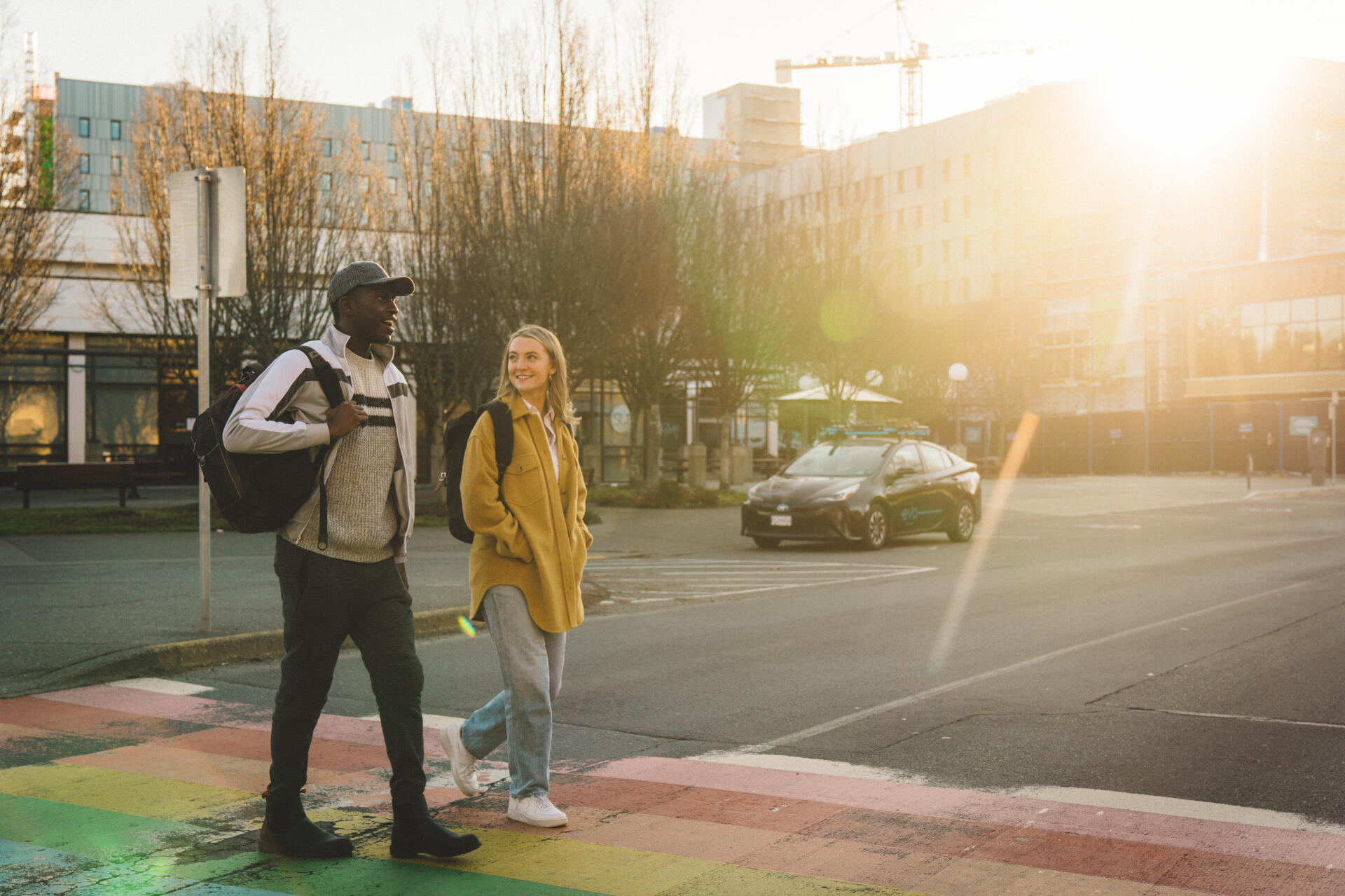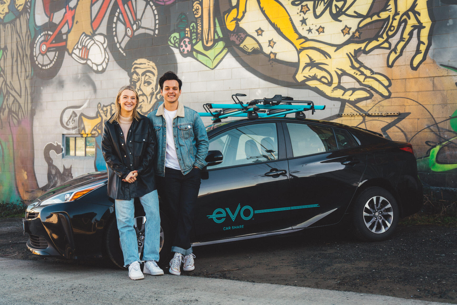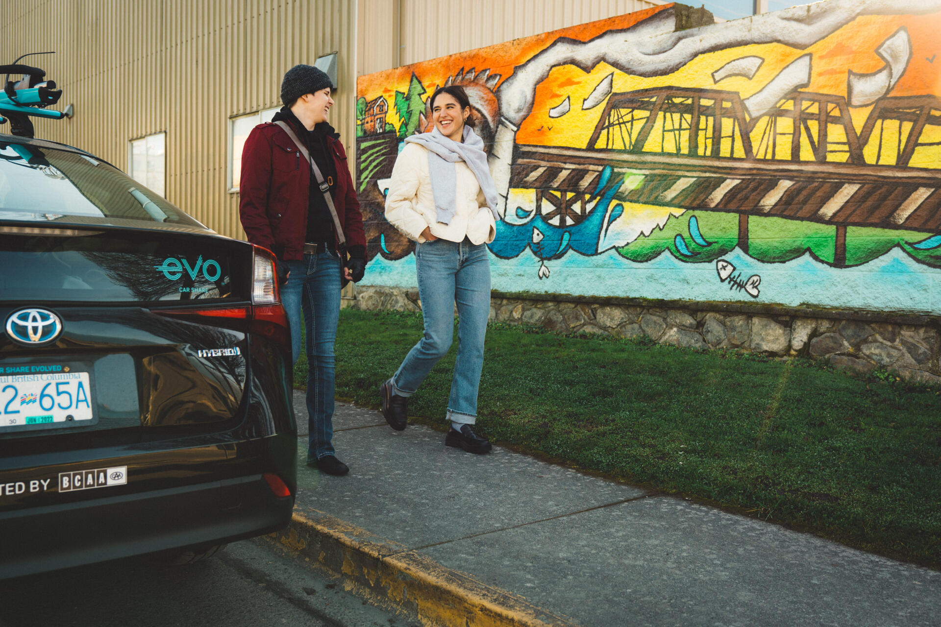 Evo Car Share, based in Vancouver and owned by BCAA, has been one of my longest commercial clients. I began working with Evo a few years ago, starting with limited scale projects, shooting lifestyle content, primarily self-directed. As the years have progressed, I have done a number of shoots for Evo, all with the same goal of creating authentic and engaging content for Evo’s social media channels, highlighting how Evo users utilize the vehicles to make their lives easier, as well as more exciting.Although when I first started working for Evo the shoots were small in size, Evo projects in the last couple years have been more expansive in scale, involving multiple models, coordinators, and stakeholders, including shooting collaborative content with Evo’s many partners (e.g., Duer Apparel, Harbour Air, Lagree West, etc.). These more expansive projects have been full day or sometimes full weekend affairs, taking the team and I across Vancouver and back, completing a predetermined shot list throughout the day, working in, at times, everchanging and stressful situations due to changing traffic, weather, and other logistical challenges.When Evo announced its expansion into Victoria in 2021, the team and I looked to plan some shoots there. Being familiar with Victoria, I took on a further role in helping plan the Victoria shoots by providing insight into locations that are iconic to the city. Our first shoot in Victoria came in February of 2022, and took us across the city, looking to achieve a number of objectives ranging from hero shots of the car in front of Rock Bay’s murals, to student/Evo interactions at UVic, to creating content to remind users to remove their trash from the Evo before ending their trip. Being blessed with a rare day of winter sun, we were able to achieve high quality results I was exceptionally happy with.