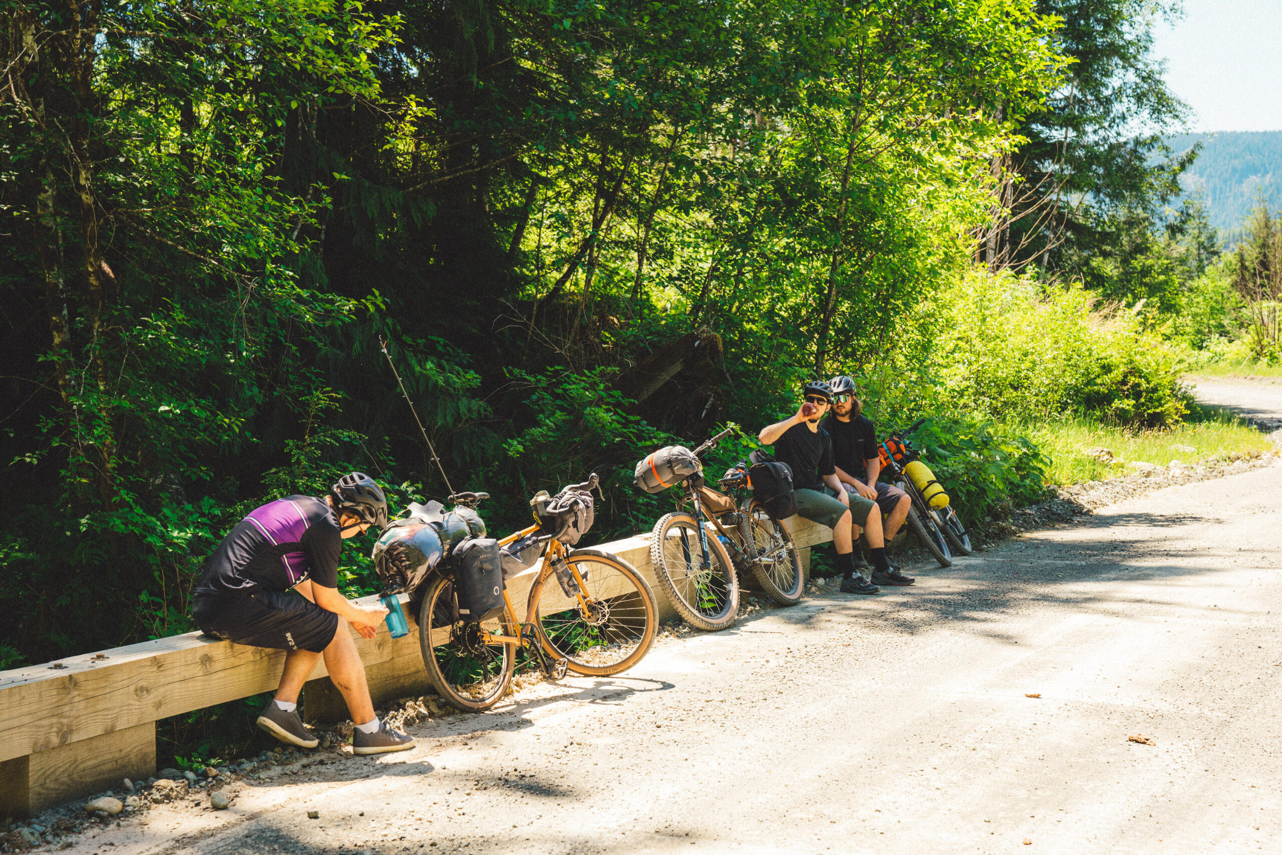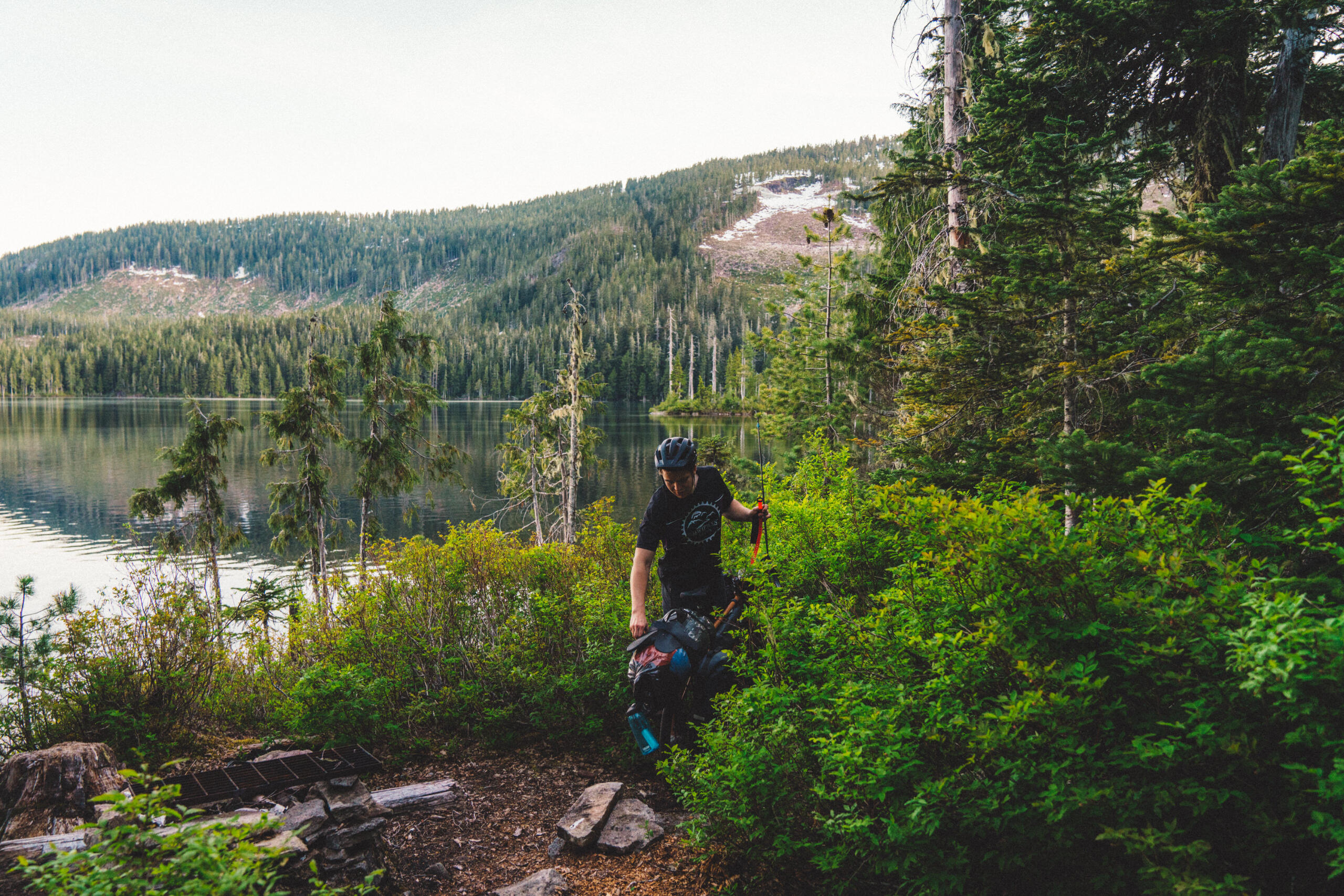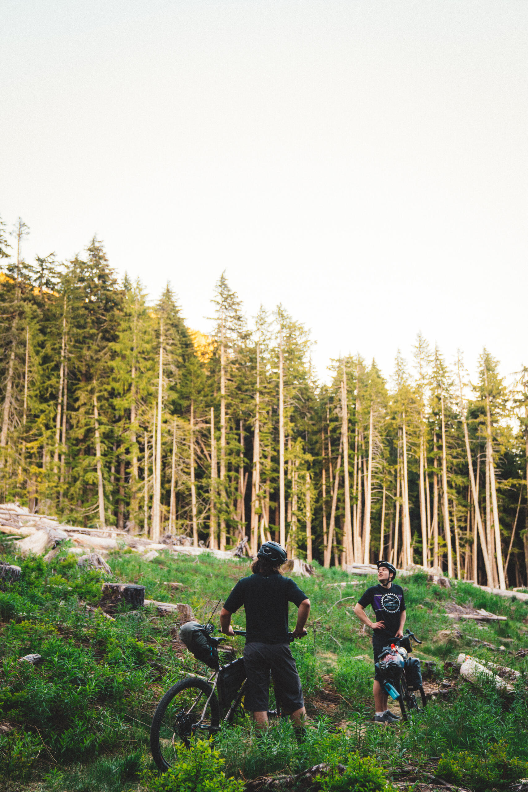 After an arduous climb pushing our bikes loaded with camping gear up a surprisingly steep gravel road in the hot June sun, the four of us took a much-needed break leaning against a logging company’s Caterpillar excavator parked for the weekend. Once we’d started pedaling about four hours earlier, the beginning of our bikepacking trip had gone surprisingly smoothly, even including a section of unexpectedly paved road. While the sudden monument of a hill had quickly ended the breeziness of the expedition, we didn’t realize that we were only beginning an onslaught of difficulties to come.In what may have been a bad omen, the troubles actually began before we departed, when one of our bikes was crushed being run over by a pickup when Jack (a great long-time friend) left it on the side of his driveway, concealed from the pickup driver by long grass. Needless to say, the bike was a write-off, and Grant (great friend and owner of Cowichan Cycles) scrambled to find a replacement in time. Luckily, he was able to source something, and on Saturday we loaded up our bikes with camping gear at the bike shop and headed out to begin our journey, being dropped off by Jack’s dad (shout out to Walt) at Kissinger Lake, just past Cowichan Lake.I had taken it upon myself to pick a route for us, and out of the options I presented, Grant, Jack, and Grant’s little brother, Luke (another great friend), agreed that following a network of logging roads from Cowichan Lake to Cameron Lake near Port Alberni would be our goal, stopping for a night at a remote mountain lake to hang out and wash a few lures. While the route looked simple and fairly easy when reviewed on online maps, the reality was quite different.Before the great hill, about three hours into our journey, we’d stopped for a lunch break at a recently repaired bridge, washed out by incredible Autumn rains. While eating, we heard a motor approaching in the distance, and a motorcyclist stopped to chat, asking where we were headed. After telling him, he asked if we’d done the route before. Replying that we hadn’t, he warned that the section beyond the top of the hill was impassable via truck, may-as-well-be impossible via motorbike, just possible on foot, and debatably so with bicycles. While we exchanged nervous looks between us, he rode off, saying he was going to assess it for himself. Quite some time later, he returned, saying the road was near completely overgrown with alders, and a large trench had formed down the middle of the 'road' due to erosion. Already hours in, we decided to push ahead up the big hill—pun intended.After our break at the excavator, we began attacking the overgrown and washed-out road. A narrow animal path cut through the alders, along the edge of the 4ft deep eroded trench. Bear scat, some fresh, lined the path, and the idea of riding was impossible, as fallen alders were everywhere, whether directly on the ground, or crisscrossing. We heaved, pushed, ducked, and fought our way for what seemed like an eternity, slowing our pace to a crawl, and stopping to filter water numerous times at small creeks contributing to the trench. After a couple hours of trudging, losing a water bottle and snapping a fishing rod in the process, we made it out to a real road, and took a long descent, re-inspiring us.While riding the clear roads and on a high, with Mt. Arrowsmith towering above us, we came face-to-face with a heard of elk, saw a few grouse, took a brief detour due to a wrong turn, and were then met with our next challenge: a deep and very cold river crossing, which left us numb from the fording. Drying off and taking a little break, we expected the last 10kms to the lake to be easy—we should have known better.The entirety of the last section was uphill, and took three hours, consisting of delusion, many expletives, and—being the one who'd found the route—a good amount of joy from the others noting my suffering along with them. When we finally arrived at our camp for the night beside the lake, it had been almost ten hours since we'd departed, travelling about 60kms, with just over 1200m in elevation gain. After setting up camp at the lake, we ate dinner, had a couple cans, some of us swam, and we then had a well-deserved sleep.The next morning, we had a slow start at the lake, fishing, swimming, and Grant even got in a morning nap. After packing up, we had a comparatively very easy journey for the day ahead of us, consisting of mostly downhill, well-established roads to our camp for the evening at Little Qualicum Falls Provincial Campground. However, our day wasn’t without it challenges, with some bike adjustments coming quickly after leaving the lake, and Luke blowing a tyre soon after that. With the repairs behind us, we ripped along the dirt roads, raising dust and enjoying the fruits of our uphill labour the previous day.About three hours after leaving the lake, we reached the paved Highway 4, coming out at the Port Alberni Summit. Flying down the paved highway, we reached Little Qualicum Falls about an hour later. Having set up camp, we rode our bikes to nearby Bigfoot Burgers, where we enjoyed smash burgers and some cans, stocking up to bring some back to camp. Back at the park, we headed to the river to wash the dust off, then head back to camp for a fire.The next day, Jack’s dad picked us up, and we grabbed brunch in Parksville, reflecting on the insanity of the last two days. While we had expected more actual riding as opposed to pushing, the total 117km journey, with over 1500m total elevation, and hitting a top-speed of just under 100km/hr when bombing down Hwy 4, was a rewarding test of will, marked by challenge but also marked by laughs (many at our own expense). Undeterred by past experiences, we’re in the process of arranging this year’s bikepacking trip; hopefully with better route selection.------------------Like what you read? This journal entry was supported in part by Cowichan Cycles. Ad