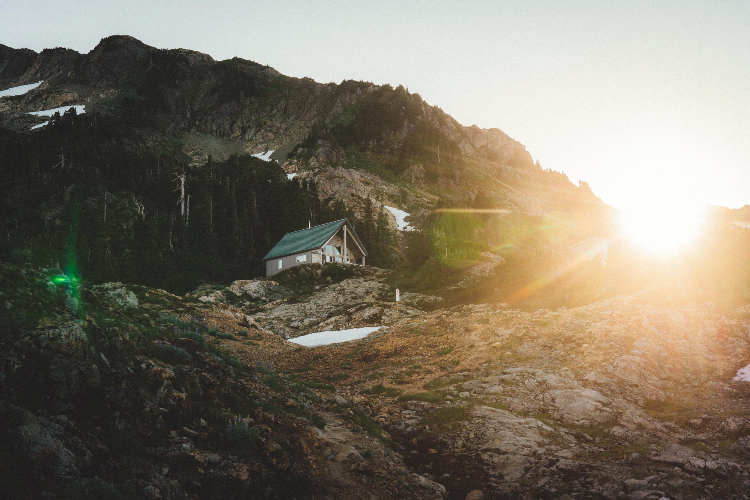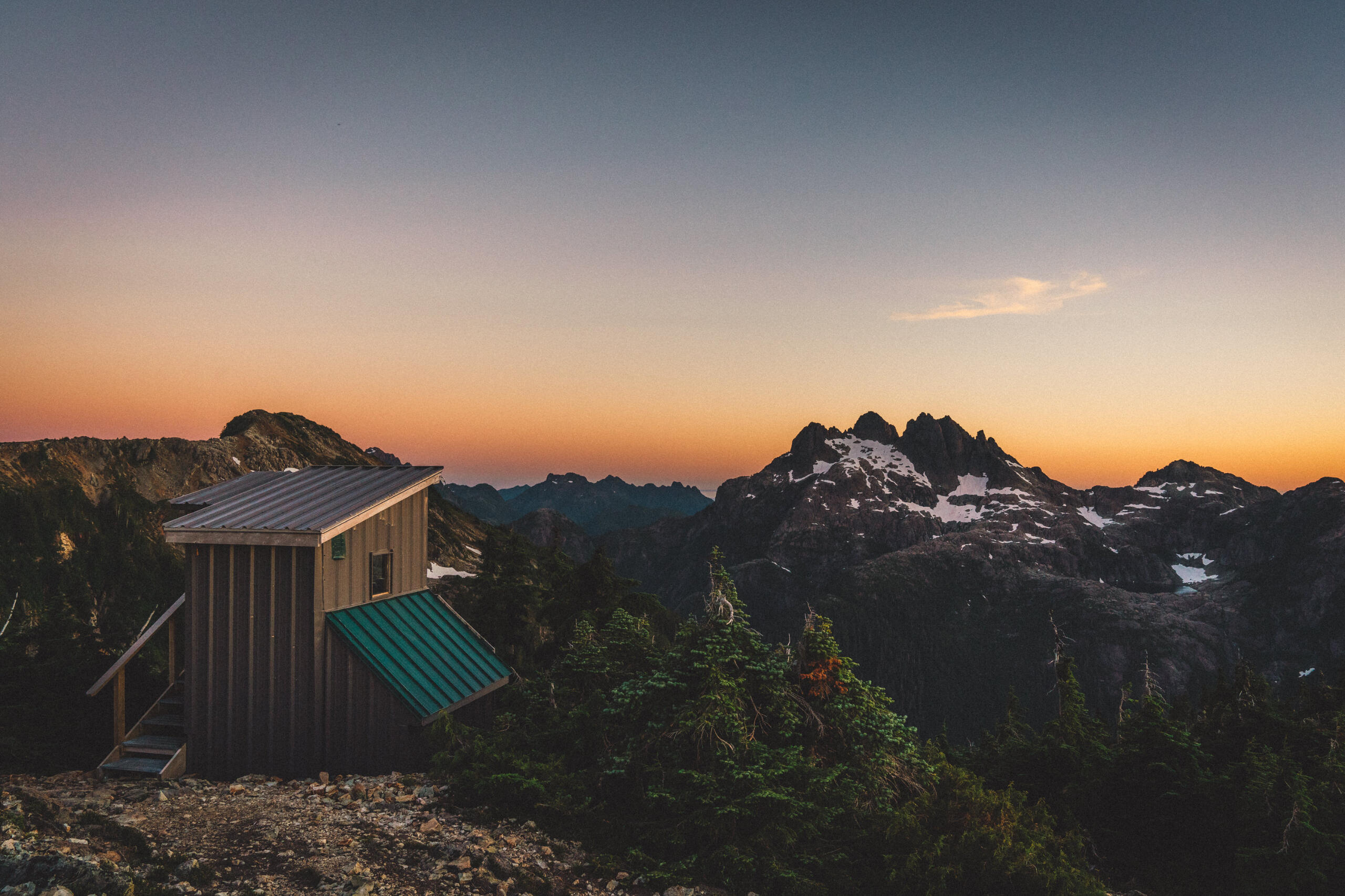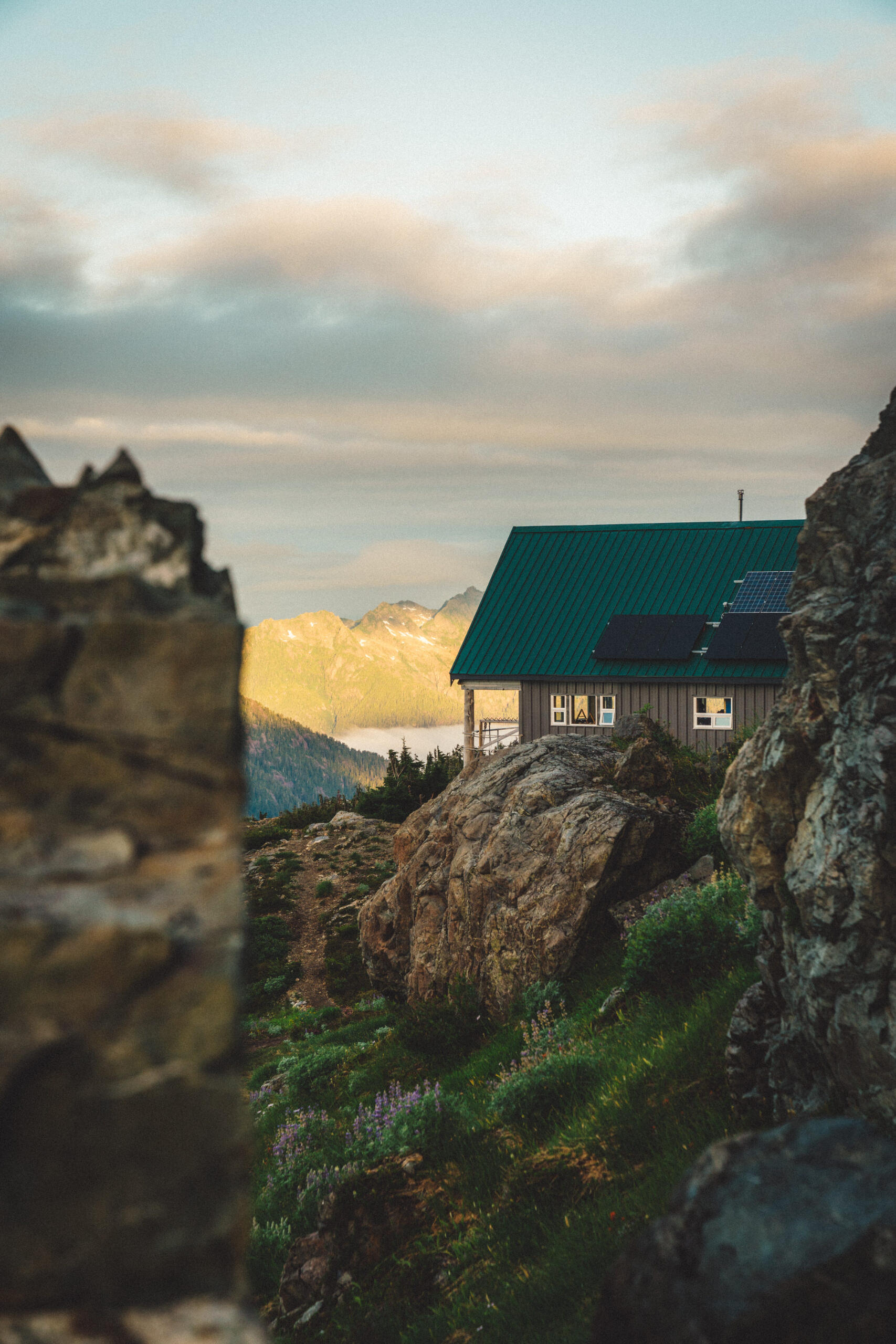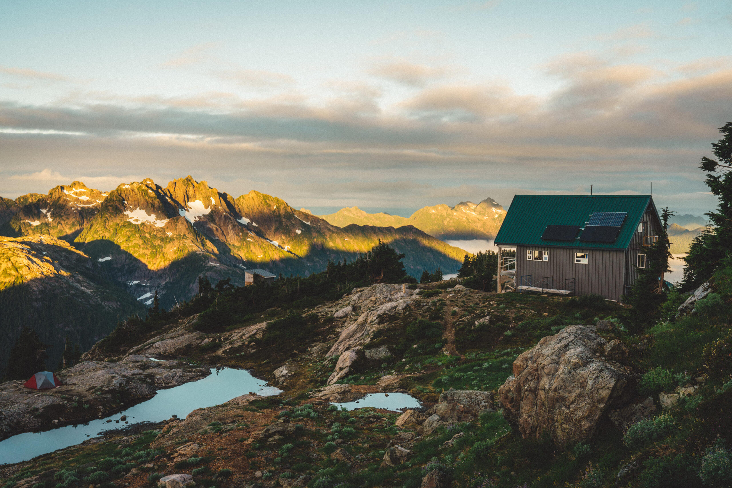 Some time ago, I wrote a piece concerning the dilemma of wilderness preservation regarding a clandestine alpine cabin. Said piece raised the forever unsolved-question of whether bringing certain special places to the attention of the masses works to the undoing of these places at the behest of overuse by disrespectful visitors, or works towards preservation efforts due to increased attention on these special places and their overall need for protection. That debate is made more complicated when applied to the clandestine cabin in question, due to its placement on private lands controlled by resource-extraction companies, who have a history of dismantling user-built cabins on Vancouver Island, including those built long before the companies in question formed. This piece, however, looks at a different alpine cabin, one well within the limelight, much bigger, with much more established amenities, and not at risk of destruction. That cabin is the Alpine Club of Canada’s, Hišimy̓awiƛ (Hi-SHIM-yawit) – meaning gathering place in Ucluelet First Nation.Formally known by its placeholder name, 5040 Hut, Hišimy̓awiƛ stands on 5040 peak within the traditional territory of the Nuu-Chah-Nulth First Nations, and is accessible by a 2.4km trail at the end of a high-clearance-recommended forest service road off of Hwy 4, between Port Alberni and Tofino. The trail is steep and moderately challenging, but should be easy enough for anyone in decent fitness with some hiking experience to complete the 700m elevation gain in about 2-3hrs. After climbing up beside small streams through forest, one begins to see mountain peak vistas teasing between the trees. Once reaching Cobalt Lake, the views begin to come into full effect, and the lake itself beckons for a quick dip (during the day at least; not exactly once the sun has set when we hiked up after work). From the lake, it’s another steep section for a short while until reaching the hut. The hut itself is composed of a main living space with a semi-stocked kitchen, chairs, tables, etc. and two bunk rooms for a total sleeping capacity of 12. For charging devices there’s solar power (backed up by a generator if necessary), and a wood pellet stove for warmth. Water is provided by small lakes or snow, and a urine-diversion outhouse nearby will be a contender for the best view one will ever experience while on the toilet.It can’t be overstated: the views surrounding the cabin are extraordinary. Wildflowers bloom along the mountainside, and other peaks rise above the morning clouds as the sun illuminates them. Most dominating is Triple Peaks, standing across the valley below, and well worth a day-hike from the same parking lot as 5040. Continuing the climb above Hišimy̓awiƛ leads to endless exploration opportunities, with the most obvious being the peak of 5040 itself, an amazing place to catch the sunrise at its most spectacular, looking down on the hut below, and Cobalt Lake below that. We spent two nights in the cabin, and spent our day and a half exploring the peaks and ridges, swimming in Cobalt Lake, relaxing in the cabin and generally enjoying the mountain air. For a destination soaked in beautiful views and terrain, it’s amazing that it’s only 2-3hrs from the trailhead.To me, Hišimy̓awiƛ provides one of the best opportunities for those who aren’t avid outdoorspeople to experience the true beauty of the great outdoors with relative ease. Although us staying in the hut was more of a novelty due to our possession of trekking gear, for those without compact tents, cooking gear, and other backpacking accoutrement, the hut provides opportunity for almost anyone of good fitness to experience the breathtaking alpine environment overnight, with only the need to pack food, clothing, and a sleeping bag. Well-established and far-from-secret, Hišimy̓awiƛ doesn’t face the same risks of destruction that unsanctioned cabins face. In this, Hišimy̓awiƛ stands as an incredible opportunity to bring attention to the surprisingly-accessible and staunch beauty that the outdoors of Vancouver Island and beyond hold. While at the cost of increased traffic, this hopefully will inspire those who haven’t ventured too far off the beaten path to protect what's beyond the pale, without having to travel too far off the beaten path at all.For more information on Hišimy̓awiƛ and to book it for yourself (finding availability may be the most challenging part of your journey) check out the Alpine Club of Canada’s website.