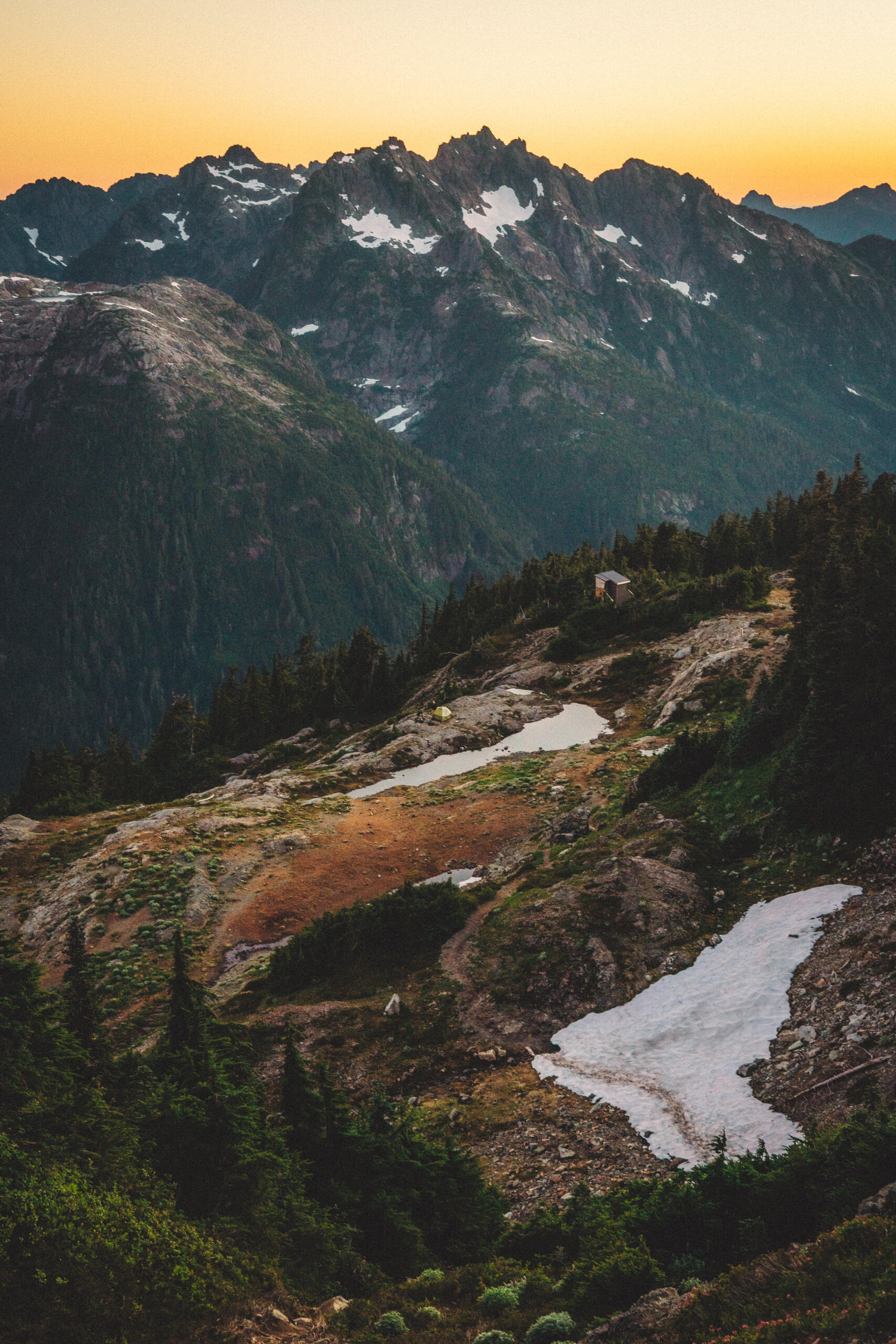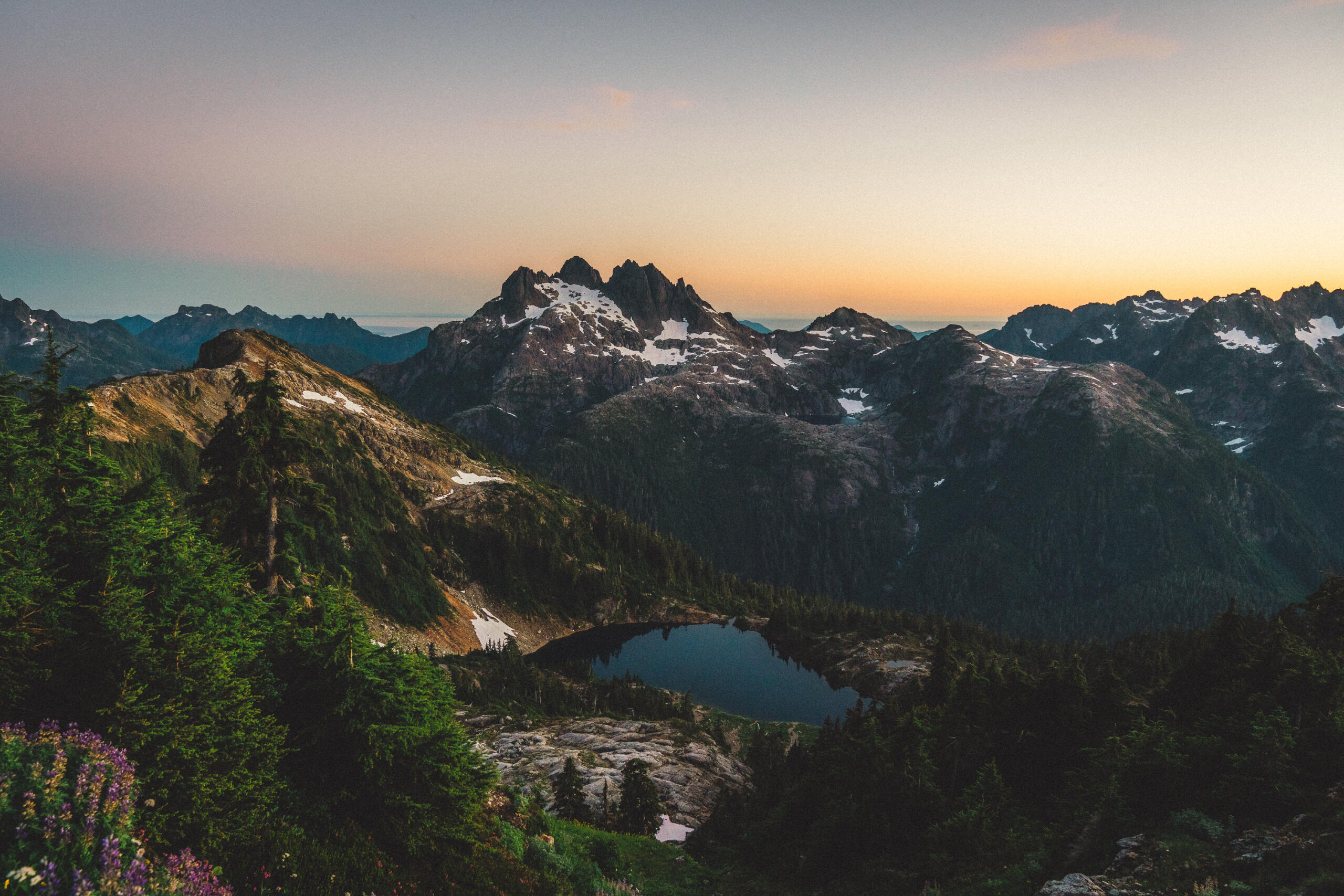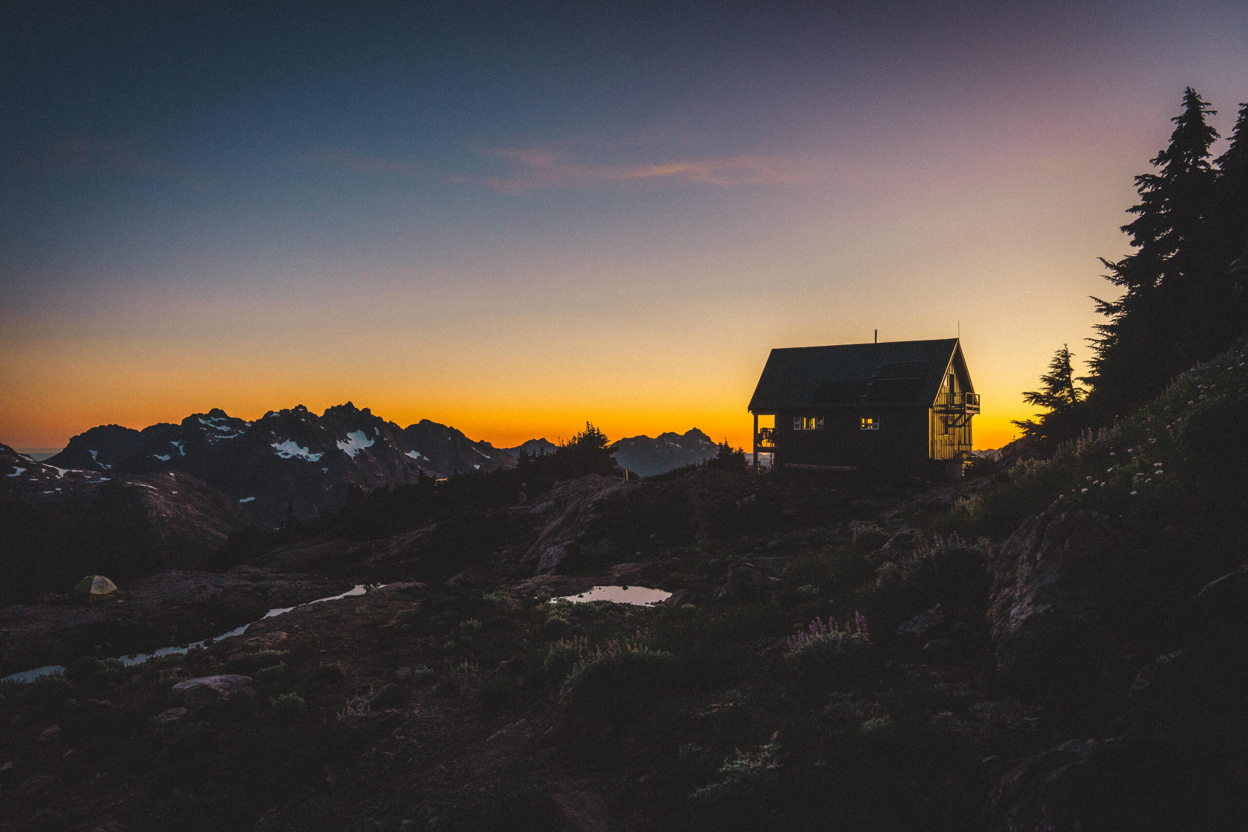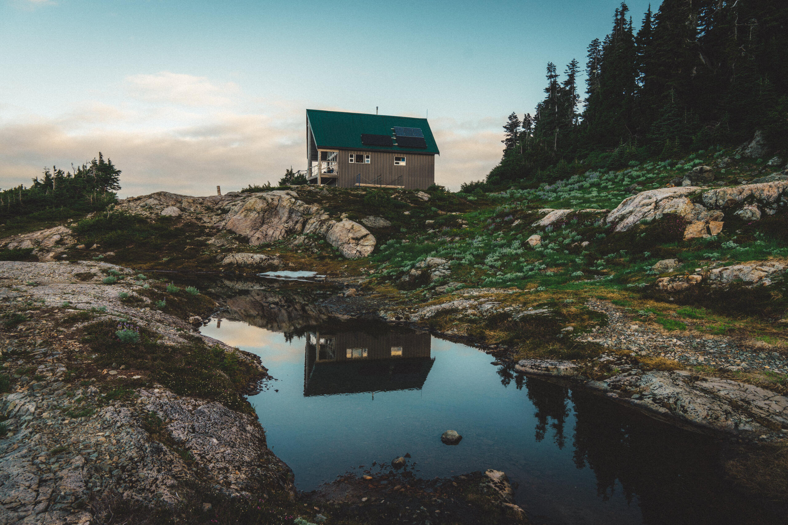 Some time ago, I wrote a piece concerning the dilemma of wilderness preservation regarding a clandestine alpine cabin. Said piece raised the forever unsolved-question of whether bringing certain special places to the attention of the masses works to the undoing of these places at the behest of overuse by disrespectful visitors, or works towards preservation efforts due to increased attention on these special places and their overall need for protection. That debate is made more complicated when applied to the clandestine cabin in question, due to its placement on private lands controlled by resource-extraction companies, who have a history of dismantling user-built cabins on Vancouver Island, including those built long before the companies in question formed. This piece, however, looks at a different alpine cabin, one well within the limelight, much bigger, with much more established amenities, and not at risk of destruction. That cabin is the Alpine Club of Canada’s, Hišimy̓awiƛ (Hi-SHIM-yawit) – meaning gathering place in Ucluelet First Nation.Formally known by its placeholder name, 5040 Hut, Hišimy̓awiƛ stands on 5040 peak within the traditional territory of the Nuu-Chah-Nulth First Nations, and is accessible by a 2.4km trail at the end of a high-clearance-recommended forest service road off of Hwy 4, between Port Alberni and Tofino. The trail is steep and moderately challenging, but should be easy enough for anyone in decent fitness with some hiking experience to complete the 700m elevation gain in about 2-3hrs. After climbing up beside small streams through forest, one begins to see mountain peak vistas teasing between the trees. Once reaching Cobalt Lake, the views begin to come into full effect, and the lake itself beckons for a quick dip (during the day at least; not exactly once the sun has set when we hiked up after work). From the lake, it’s another steep section for a short while until reaching the hut. The hut itself is composed of a main living space with a semi-stocked kitchen, chairs, tables, etc. and two bunk rooms for a total sleeping capacity of 12. For charging devices there’s solar power (backed up by a generator if necessary), and a wood pellet stove for warmth. Water is provided by small lakes or snow, and a urine-diversion outhouse nearby will be a contender for the best view one will ever experience while on the toilet.It can’t be overstated: the views surrounding the cabin are extraordinary. Wildflowers bloom along the mountainside, and other peaks rise above the morning clouds as the sun illuminates them. Most dominating is Triple Peaks, standing across the valley below, and well worth a day-hike from the same parking lot as 5040. Continuing the climb above Hišimy̓awiƛ leads to endless exploration opportunities, with the most obvious being the peak of 5040 itself, an amazing place to catch the sunrise at its most spectacular, looking down on the hut below, and Cobalt Lake below that. We spent two nights in the cabin, and spent our day and a half exploring the peaks and ridges, swimming in Cobalt Lake, relaxing in the cabin and generally enjoying the mountain air. For a destination soaked in beautiful views and terrain, it’s amazing that it’s only 2-3hrs from the trailhead.To me, Hišimy̓awiƛ provides one of the best opportunities for those who aren’t avid outdoorspeople to experience the true beauty of the great outdoors with relative ease. Although us staying in the hut was more of a novelty due to our possession of trekking gear, for those without compact tents, cooking gear, and other backpacking accoutrement, the hut provides opportunity for almost anyone of good fitness to experience the breathtaking alpine environment overnight, with only the need to pack food, clothing, and a sleeping bag. Well-established and far-from-secret, Hišimy̓awiƛ doesn’t face the same risks of destruction that unsanctioned cabins face. In this, Hišimy̓awiƛ stands as an incredible opportunity to bring attention to the surprisingly-accessible and staunch beauty that the outdoors of Vancouver Island and beyond hold. While at the cost of increased traffic, this hopefully will inspire those who haven’t ventured too far off the beaten path to protect what's beyond the pale, without having to travel too far off the beaten path at all.For more information on Hišimy̓awiƛ and to book it for yourself (finding availability may be the most challenging part of your journey) check out the Alpine Club of Canada’s website.