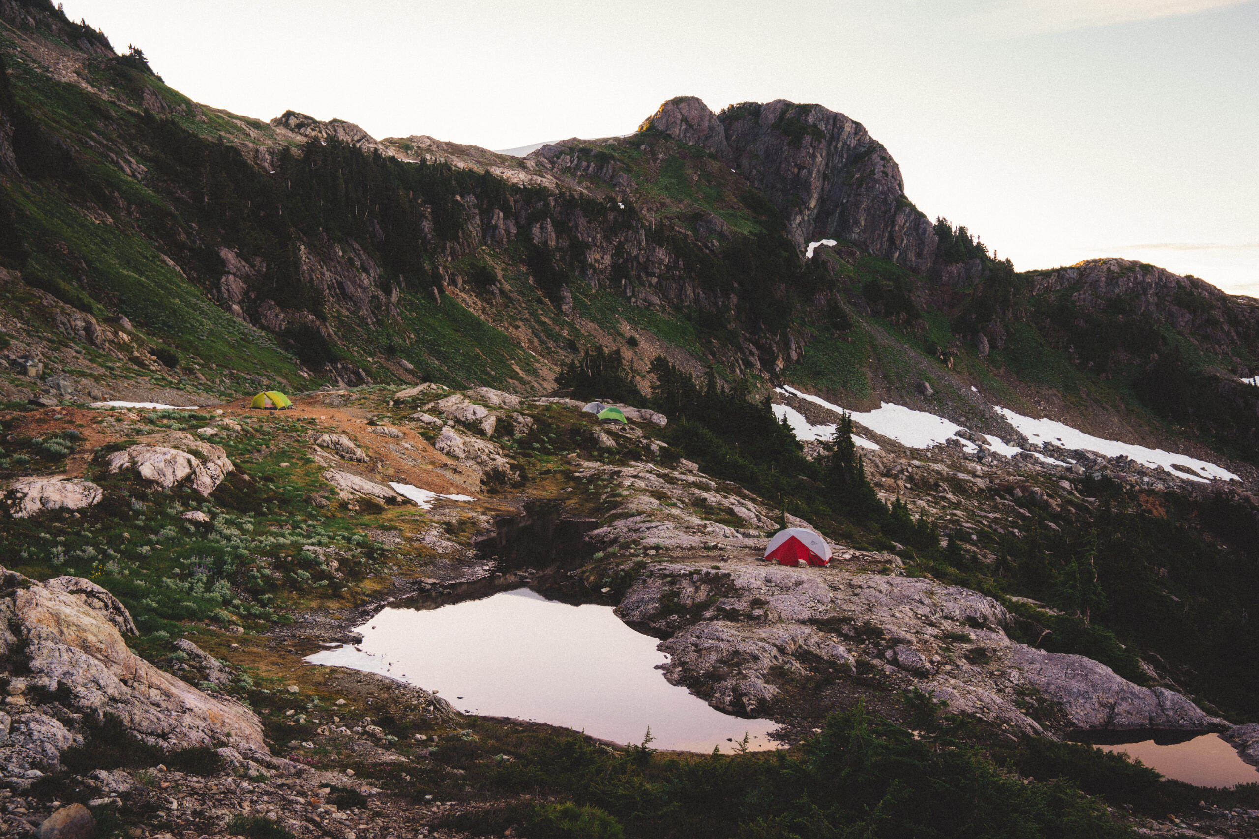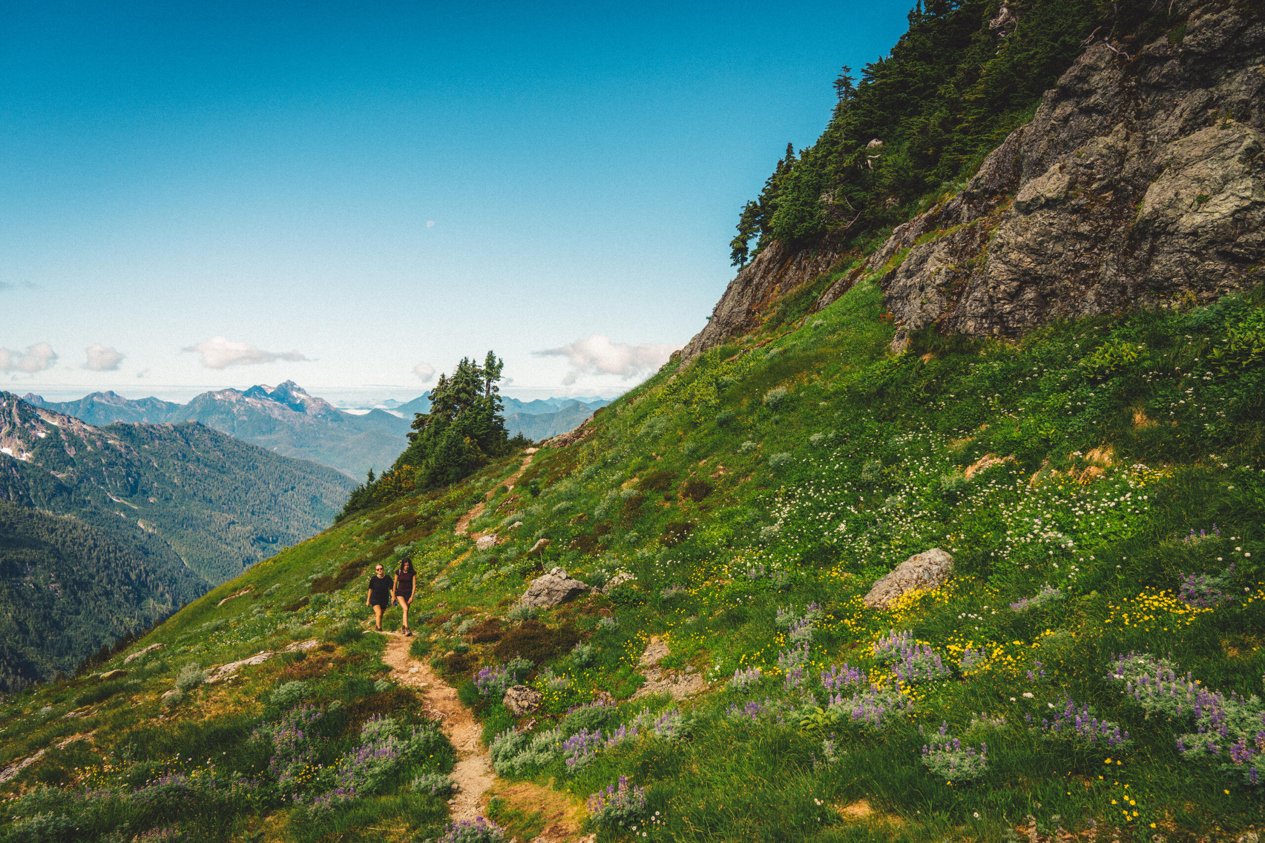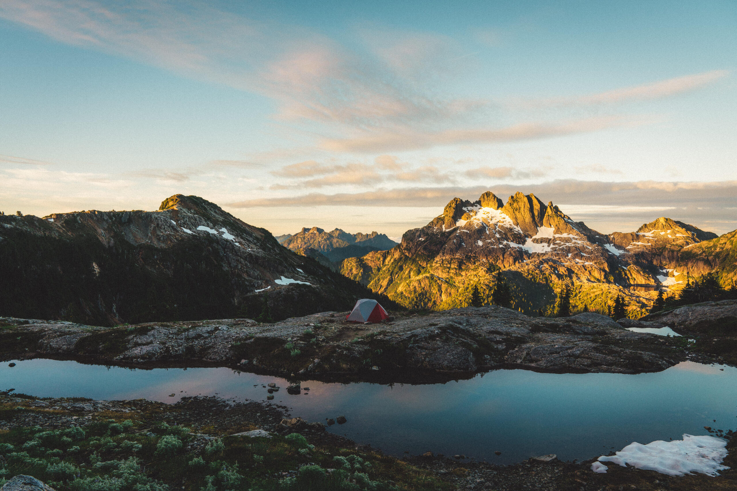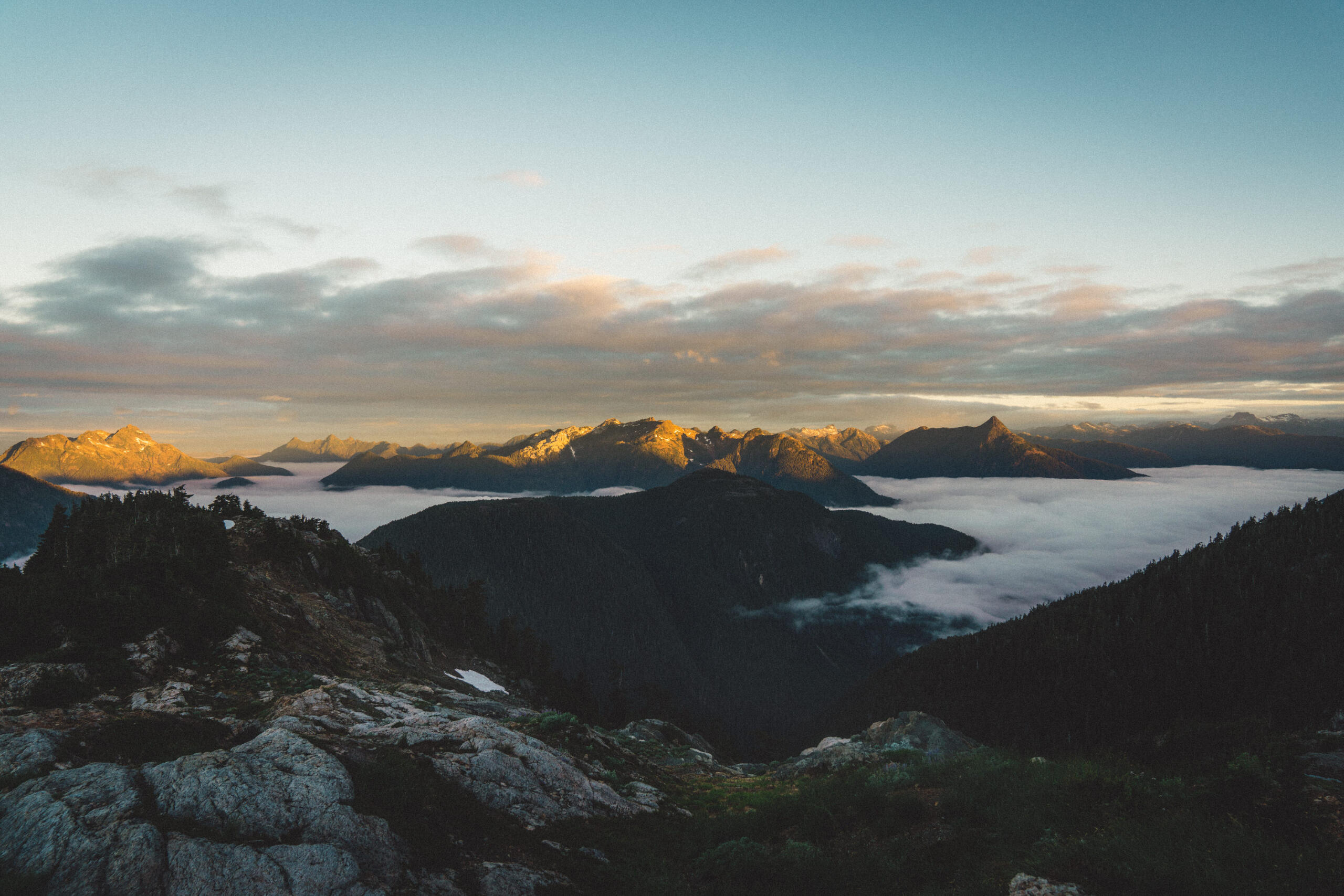Some time ago, I wrote a piece concerning the dilemma of wilderness preservation regarding a clandestine alpine cabin. Said piece raised the forever unsolved-question of whether bringing certain special places to the attention of the masses works to the undoing of these places at the behest of overuse by disrespectful visitors, or works towards preservation efforts due to increased attention on these special places and their overall need for protection. That debate is made more complicated when applied to the clandestine cabin in question, due to its placement on private lands controlled by resource-extraction companies, who have a history of dismantling user-built cabins on Vancouver Island, including those built long before the companies in question formed. This piece, however, looks at a different alpine cabin, one well within the limelight, much bigger, with much more established amenities, and not at risk of destruction. That cabin is the Alpine Club of Canada’s, Hišimy̓awiƛ (Hi-SHIM-yawit) – meaning gathering place in Ucluelet First Nation.Formally known by its placeholder name, 5040 Hut, Hišimy̓awiƛ stands on 5040 peak within the traditional territory of the Nuu-Chah-Nulth First Nations, and is accessible by a 2.4km trail at the end of a high-clearance-recommended forest service road off of Hwy 4, between Port Alberni and Tofino. The trail is steep and moderately challenging, but should be easy enough for anyone in decent fitness with some hiking experience to complete the 700m elevation gain in about 2-3hrs. After climbing up beside small streams through forest, one begins to see mountain peak vistas teasing between the trees. Once reaching Cobalt Lake, the views begin to come into full effect, and the lake itself beckons for a quick dip (during the day at least; not exactly once the sun has set when we hiked up after work). From the lake, it’s another steep section for a short while until reaching the hut. The hut itself is composed of a main living space with a semi-stocked kitchen, chairs, tables, etc. and two bunk rooms for a total sleeping capacity of 12. For charging devices there’s solar power (backed up by a generator if necessary), and a wood pellet stove for warmth. Water is provided by small lakes or snow, and a urine-diversion outhouse nearby will be a contender for the best view one will ever experience while on the toilet.It can’t be overstated: the views surrounding the cabin are extraordinary. Wildflowers bloom along the mountainside, and other peaks rise above the morning clouds as the sun illuminates them. Most dominating is Triple Peaks, standing across the valley below, and well worth a day-hike from the same parking lot as 5040. Continuing the climb above Hišimy̓awiƛ leads to endless exploration opportunities, with the most obvious being the peak of 5040 itself, an amazing place to catch the sunrise at its most spectacular, looking down on the hut below, and Cobalt Lake below that. We spent two nights in the cabin, and spent our day and a half exploring the peaks and ridges, swimming in Cobalt Lake, relaxing in the cabin and generally enjoying the mountain air. For a destination soaked in beautiful views and terrain, it’s amazing that it’s only 2-3hrs from the trailhead.To me, Hišimy̓awiƛ provides one of the best opportunities for those who aren’t avid outdoorspeople to experience the true beauty of the great outdoors with relative ease. Although us staying in the hut was more of a novelty due to our possession of trekking gear, for those without compact tents, cooking gear, and other backpacking accoutrement, the hut provides opportunity for almost anyone of good fitness to experience the breathtaking alpine environment overnight, with only the need to pack food, clothing, and a sleeping bag. Well-established and far-from-secret, Hišimy̓awiƛ doesn’t face the same risks of destruction that unsanctioned cabins face. In this, Hišimy̓awiƛ stands as an incredible opportunity to bring attention to the surprisingly-accessible and staunch beauty that the outdoors of Vancouver Island and beyond hold. While at the cost of increased traffic, this hopefully will inspire those who haven’t ventured too far off the beaten path to protect what's beyond the pale, without having to travel too far off the beaten path at all.For more information on Hišimy̓awiƛ and to book it for yourself (finding availability may be the most challenging part of your journey) check out the Alpine Club of Canada’s website.